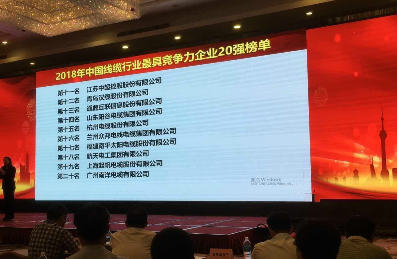2018線纜行業(yè)前20強(qiáng),上海起帆列位其中!
