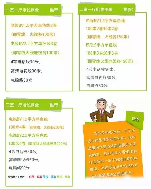 不同戶型用線量估算