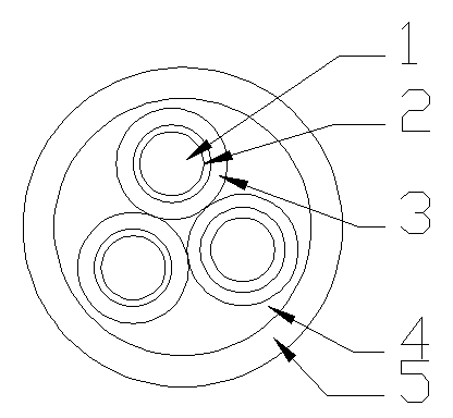 1—導(dǎo)體 2—云母帶繞包層 3—硅橡膠絕緣層 4—防火層 5—聚烯烴外護(hù)層